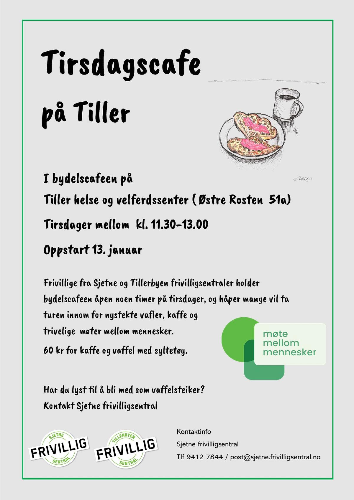 Hjemme på dagtid og har lyst til å møte andre fra Tillerområdet over en kopp kafe og nystekte vafler? Kom på Tirsdagscafe i Bydelscafeen!